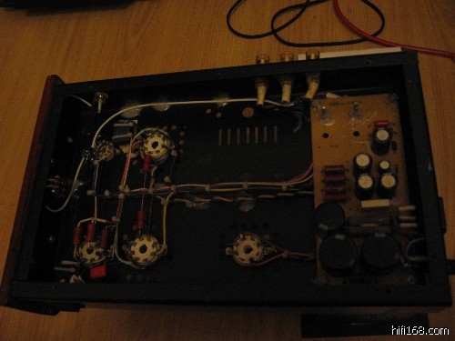 是推挽的,但声音很柔和的,比我自己用300B的专用牛做的单端声音好听多了.听蔡琴的CD最好听. [upload=jpg]Upload/200662115121290150.jpg[/upload]