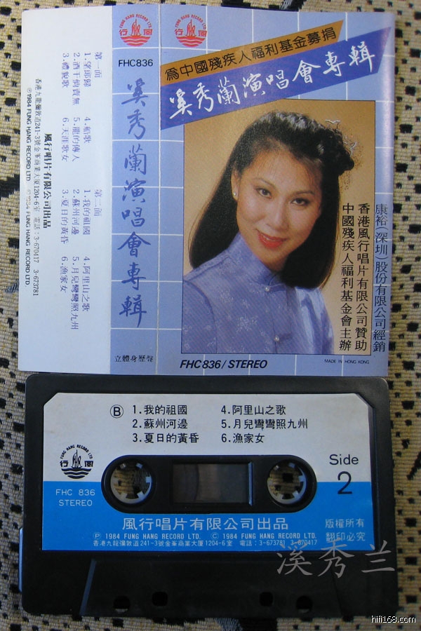 原帖由 溪秀兰 于 2007-12-12 23:37:00 发表最近收的录音带,风行唱片有限公司出品,原版磁带:《奚秀兰 何日君再来》、《奚秀兰演唱会专辑 为中国残疾人福利基金募捐》[img]1[/......