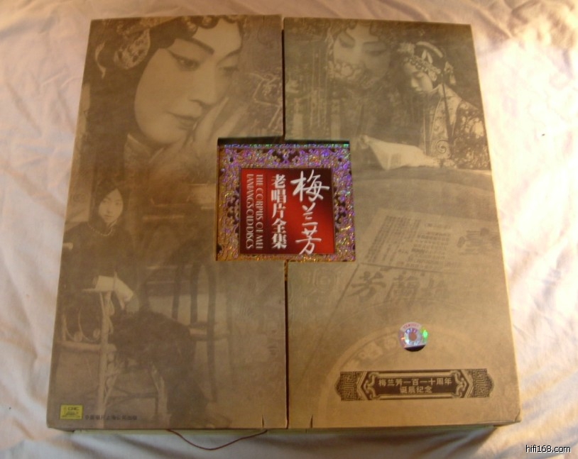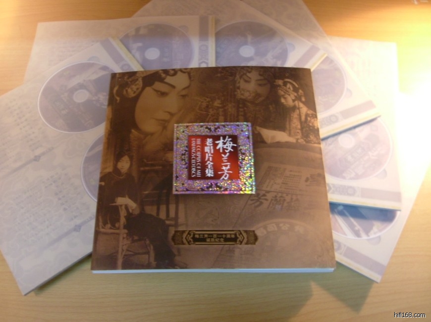 这套唱片一共10张,是梅兰芳诞辰110周年时的纪念出版物,收录了49年之前梅兰芳所有的老唱片录音。只可惜秉承了中国唱片的毛病——华而不实,外面装帧看起来华丽得不得了,但是里面的装盒方法很不利于唱片的保存。