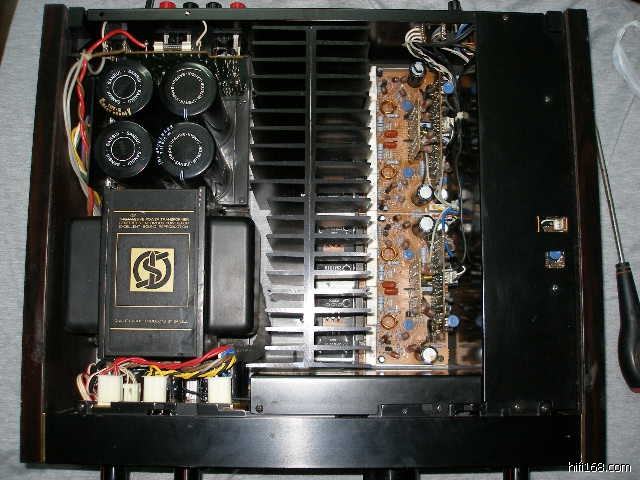 山水独家特制的变压器,以及埋在大型散热器里的原装定制配对三肯大功率管。