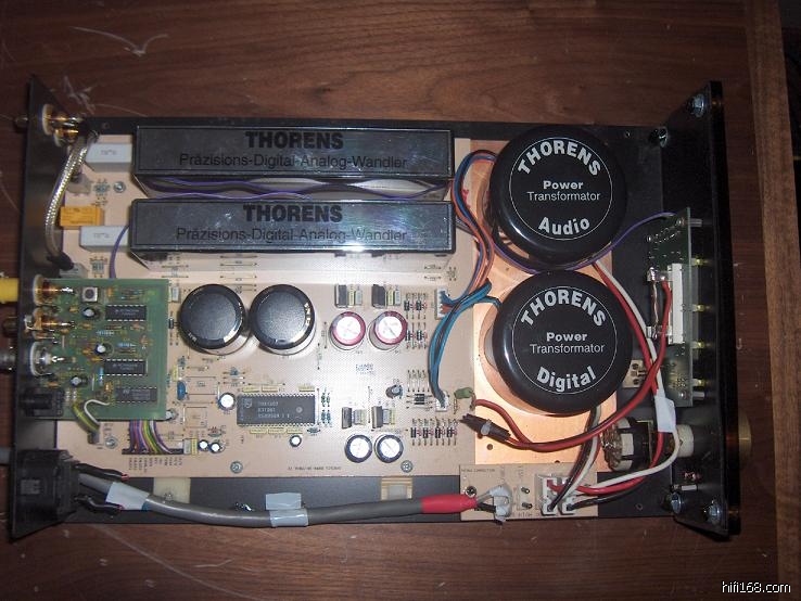 目前絕大多數的音響迷都是數位擁護者,現在仍然不聽CD,而以LP當作音樂來源的人可 真是越來越少了。除非得像李富桂、林清榮等音響前輩,手中早已擁有大量LP名盤時,才 有辦法無視於CD或DVD的存在,盡情陶醉在LP的轉動之中。對他們而言,取出封套、洗唱 片、放唱臂、調唱針等動作哪裡是累贅,我看幸福得很呢!沒錯,這些前輩是真的對CD系統一點興趣也沒有,雖然目前的新錄音只推出CD唱片,但對真正的LP死硬派而言,黑膠盤就已經聽不完了,哪裡還有時間聽CD呢?Thorens TDA2000數類轉換器。使用Philips TDA 1307進行數位濾波,每聲道各一顆 Philips TDA 1547作D/A轉換。兩組RCA同軸數位輸入,一組Toslink光纖輸入,一組RCA同 軸數位輸出,一組RCA同軸類比輸出。