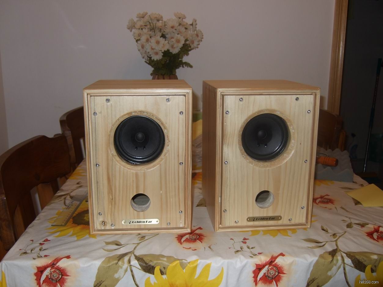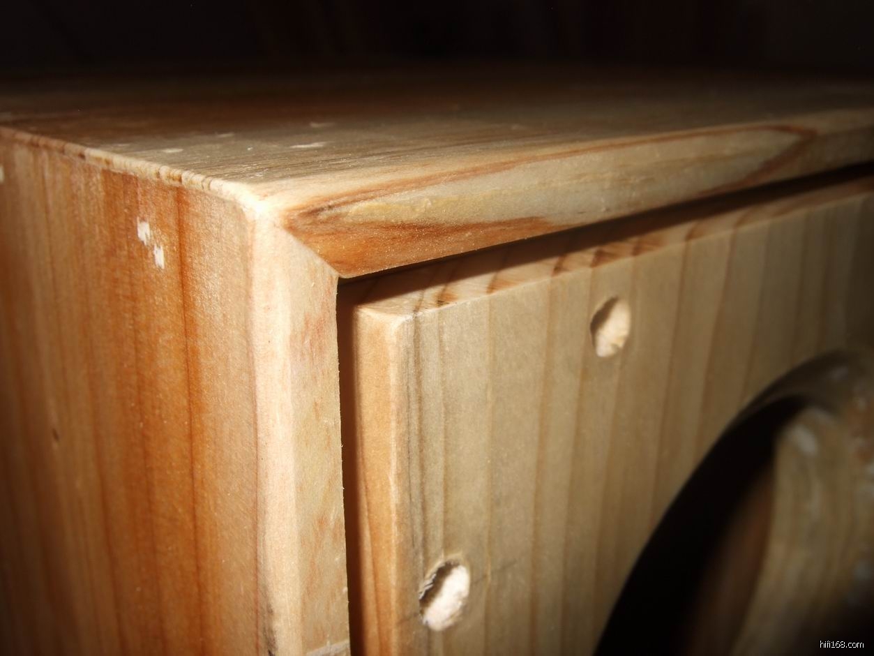 箱体用进口白松木制作,声音更鲜活,板边45度角对接,磨圆,前面开槽,安装内嵌式音箱罩,网布紧贴前面板,减少声音反射,超重纯铜渡24K金接线柱(10块一个的),箱体表面打磨光滑,七便喷漆,10颗内六角钢螺丝固定前面板,专门为他设计定做的纯铜拉丝标牌