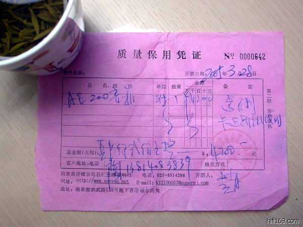一手自用,用心爱惜,05年购与南京三越,9成新的成色,因烧瘾重犯,妄图升级,现忍痛试出,2600可小刀.站内短信,或短信至13814083688.刚刚搬家,包装还在,但泡沫已经被LP扔掉....南京或附近的烧友上门自提最佳. 实在出不掉准备留下给老爸,再培养个烧友出来