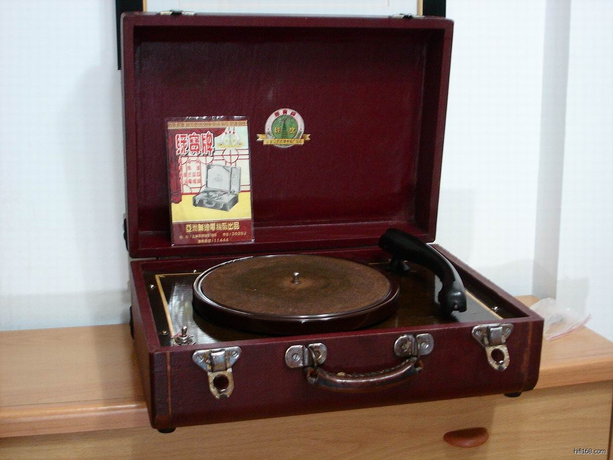 民国35年,上海亚洲无线电厂为响应“抵制外货,爱用国货”的号召,开始仿制单速电唱机。该机参考国外样机,自制单相罩极式电动机及磁极式唱头,年内开始批量生产,商标定为绿宝牌。由于该唱机系国内自产,又属首次上市,产品质量稳定,受到消费者欢迎,购买者大多为文艺界人士。1953年,上海五金交电公司对绿宝牌电唱机实行包销。1952年12月,上海唱片厂利用上海百代唱片公司遗留下来的模具和库存零件,生产发条驱动式唱机——中华牌101型手摇唱机,当年生产256台。中国唱片厂手摇唱机到1956年停产,累计生产390389台。