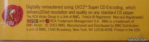 经典名碟,断版已久,2003年RCA用UV22的格式重新处理,美国制造,全新不开封,120元包顺丰,有意请联系13531293862 0754-2861027