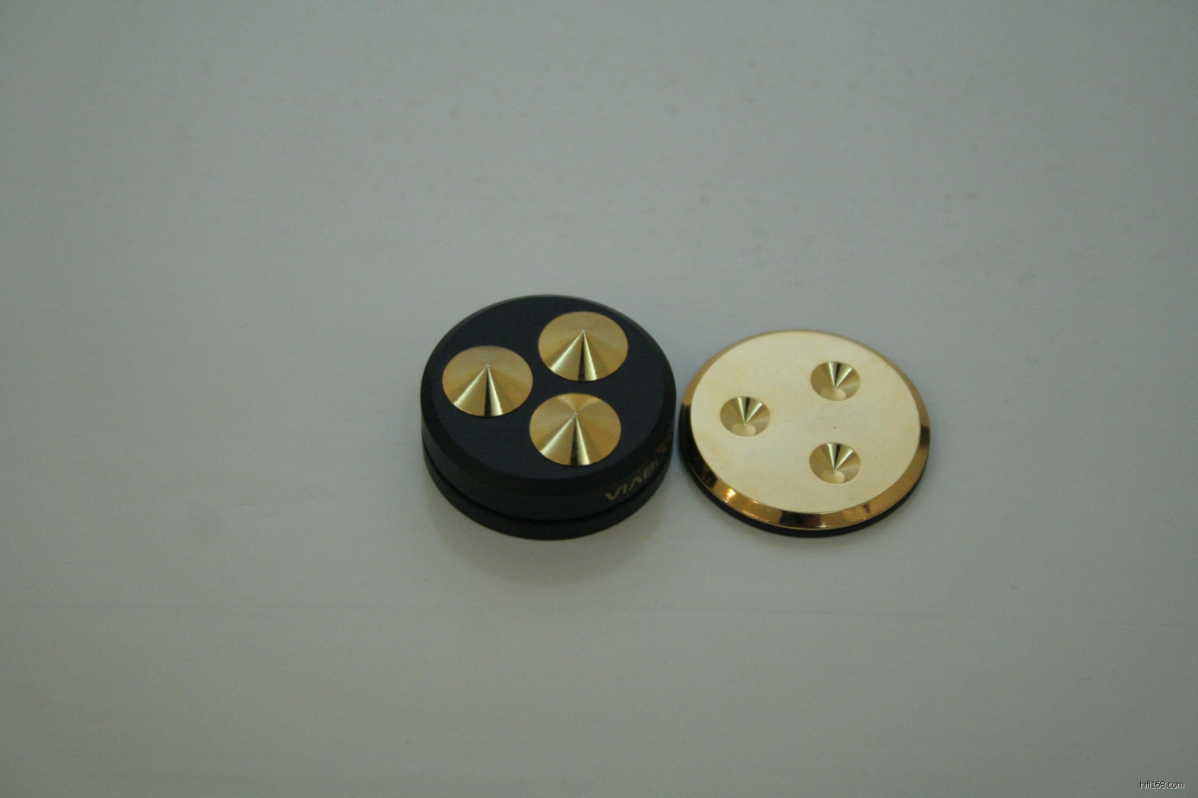 ViaBlue TRI 减震器由纯铜制作。承压的零部件(主磁盘,高频峰点等) 都用钢加固。TRI 减震器的最大点距为30 mm. 基础高度为15 mm.可调高或调低1 mm.