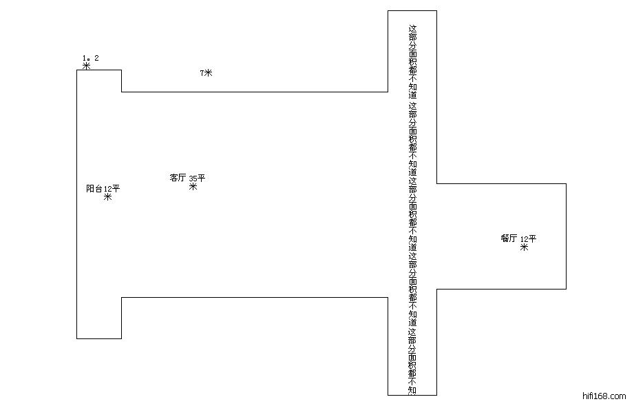 音乐听得杂,房间在60平米左右,连体厨房和客厅阳台,还有过道,总计超过60平米,单论客厅是35平米