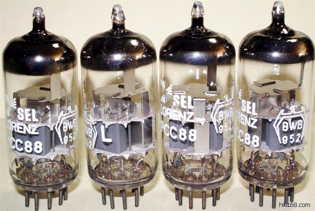 在此胆管露面之初,我就订过一对!曾在我自己的参考唱放上负责最为关键的第一级放大(后来却被一好朋友强抢了去用在他的PRA2前级上,说是提升了几倍云云)。直接跟我蛮喜爱的Amperex PQ7308 USA white label比较过,除去音质相当地接近之外,最让人惊讶的是噪音还低一些;那细节的呈现与微动态对比也不输于前者: