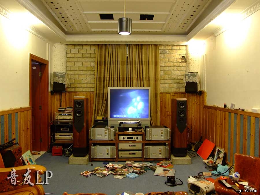 音箱有:卓丽小山;功放是:美国精神T2前级、一台美国精神6e分体后级,一边声道甲类125w、另一台美国精神10e分体后级,一边声道甲类175w;双后级来推卓丽小山.CD机是:金嗓子80、81分体CD机.这套系统我感觉推力实足,这两台后级是大电流后级,一边声道开机瞬间电流达到18安过20秒衡定在5安.推卓丽小山很出色,平衡感好,音色也很好,是对较全面的音箱.