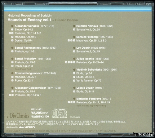 Diw Classics:Hounds of Ecstasy Vol.1 “Russian Pianism”
