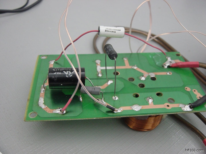 分频电容是英国EVOX,电阻是DALE,电感是普通产品,阻抗补偿电容是SOLEN。