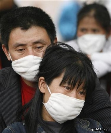 5月16日,绵阳临时救助中心外,因为没能在安置人员名单上找到女儿的名字,一名妇女伤心痛哭。(2008/5/23 23:27:55 上传)