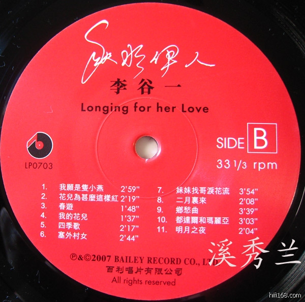 现在这张《秋水伊人》LP黑胶的曲目是根据两张专辑选出来的。与LP黑胶同期发行XRCD版本,两种软件载体,目前市面上只见有LP黑胶,没见XRCD。比1996年出品的《秋水伊人》CD唱片多了《送我一枝玫瑰花》、《天涯歌女》、《花儿为什么这样红》、《我愿是只小燕》等歌,显然,这些歌在《花儿为什么这样红》专辑;却少了《卖布谣》、《风雨催眠曲》等歌,那是没收录进来。