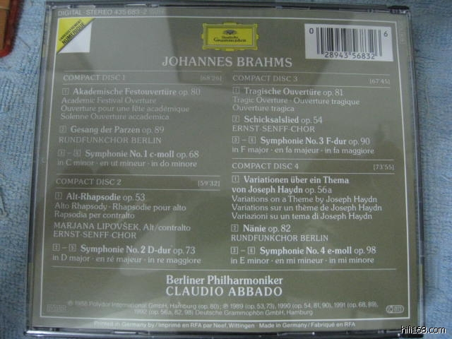 原帖由 江月 于 2008-7-23 9:59:00 发表支持好贴!期待下文阿巴多的录音的确好于旺德,尤其是第四,旺德全集应是属于80年代早期吧,每首的录音也是有差别的,第四俺觉得平衡很有问题。另外,私下认为旺德90年代的现场版全面胜过80年代录音室版。至于卡爷的小双张是70年代的模拟版,关键是录音理念和阿巴多的有很大区别
