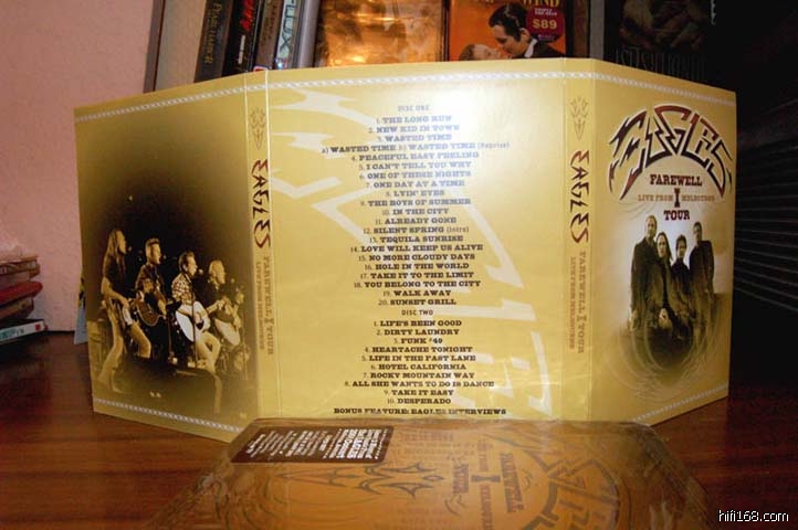 相信国内大多烧友真正喜欢老鹰也许是从1994年他们的《冰封地狱》不插电演唱会中感受到他们的音乐魅力与一流的现场的录音,2004年他们于墨尔本的告别演唱会无论从配器的精良度还是演唱会的规模,录音和影像效果无一不超越1994版,虽然主唱唐. 亨利嗓音比94版沙哑了,但丝毫掩盖不了他的激情和情感的整体表现,其他三头鹰的表现也比94版更HI!舞台光影效果更是达到及至!个人认为所有表现均超越1994版录音,影像就比94版好太多了,但以先入为主的角度看来,《加洲旅馆》是94版经典,2004版尽管配器更加精致!图象:1.85:1,可变形,声轨:DTS,