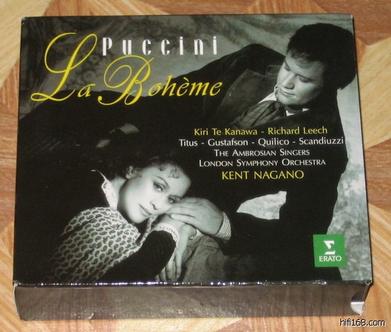这套数码录音的波希米亚人是美籍日本人长野健执棒的,整体处理别具一格,有一种日本版画的线条感,非常抒情,而且是淡雅的抒情。本质上说卡纳娃属于莫扎特式的女高音,但她演唱的咪咪非常考究。她最大的特点就是歌声仿佛隐藏在一片迷雾中,就像天外来者,徐徐地向人间飘荡过来。这种特殊的音色造就的咪咪非常唯美,不像绣花女而更像天女散花。里赫这位仁兄在EMI普拉松指挥古诺《浮士德》中的演唱给了我很深的印象,这次演唱的鲁道夫相对拘谨一点,但在抒情上和卡纳娃非常合拍。总之这是一个很有特色的版本,值得一听,喜欢数码录音的朋友可以考虑。