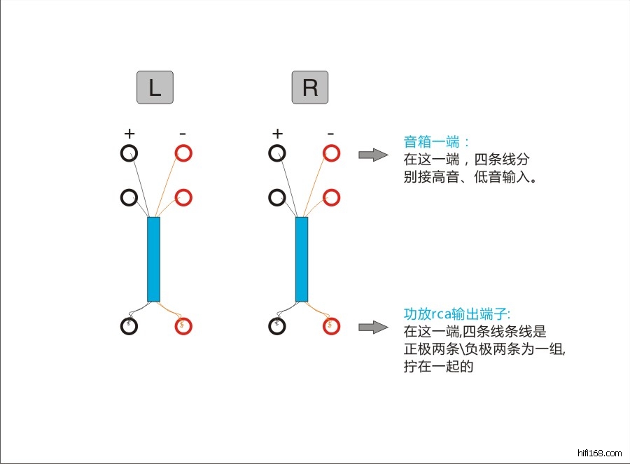 小弟有一对ae evo1和马兰士pm6001功放,本人对hifi技术不了解,本来以为pm6001只有一组输出rca端口、不能双线分音,但看到马兰士说明书上介绍了一种双线分音的方法:就是将两条黑线(evo1高低音正极)的连接功放的一端拧到一起,插到pm6001的正极输出上;再将两条红线(evo1高低音负极)的连接功放的一端到一起,插到pm6001的负极输出上。