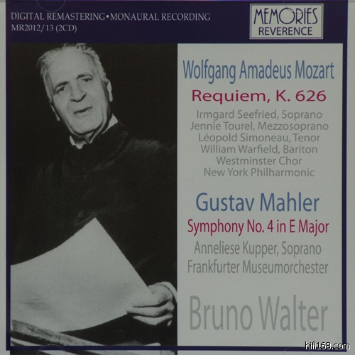 CBS MPK 45556 Sony SMK 64480e)Wilma Lipp, (S), Hilde Rössel-Majdan (A), Anton Dermota (T), Otto Edelmann (B)Singverein der Gesellschaft der Musikfreunde; Vienna PhilharmonicJune 23, 1956Musikvereinssaal (live performance) Sony 25DC 5199、Sony SICC 94f)Lisa della Casa (S), Ira Malaniuk (A), Anton Dermota (T), Cesare Siepi (B)Vienna State Opera Chorus; Vienna PhilharmonicJuly 26, 1956Festspielhaus, Salzburg (live performance)  Nuova Era 2209 Orfeo C 430961 Bg)Maria Stader (S), Maureen Forrester (MS), David Lloyd (T), Otto Edelmann (B)Chicago Symphony Orchestra and ChorusMarch 13, 1958Orchestra Hall, Chicago (live performance)