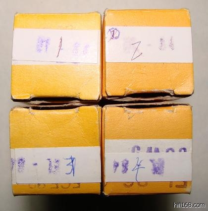 补充说明:这套管子买来时就是这样。当时手头宽裕,拿出几百元没当回事,邮购到手后只打开粗粗看了一下,连上机试一下都没有,就收藏备用了。图照上网后,有烧友指出有只管子型号标识色泽偏暗,现补充拍了几张照片,供大家细细判别。