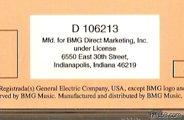 小小指正一下,Mfd. for BMG Direct Marketing Inc, 中的Mfd.是Manufactured的简写,意为生产、制造。BMG Direct Marketing Inc是一家以直销(直接邮寄)模式发行销售主流音乐厂牌制品的公司(中文称为:BMG直销公司),其发售的唱片不仅是来自BMG旗下的公司,更有来自华纳、环球旗下的产品,至今仍然运作。