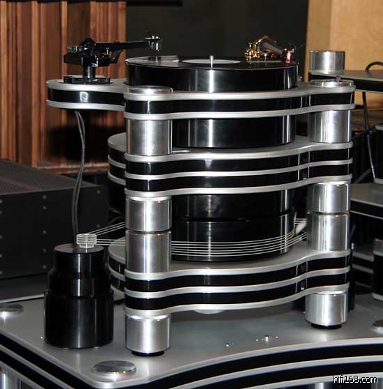 Amari(阿玛尼)最新910 旗舰黑胶唱盘采用了底盘磁悬浮、轴承磁助力、转盘磁驱动的顶尖黑胶唱盘技术制造,定价19.8万元,将亮相白天鹅音响展和09年的美国CES大展。