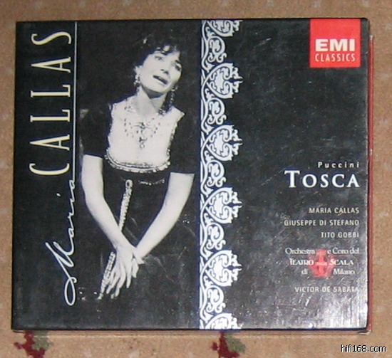 提到《托斯卡》无论如何是躲不过卡拉斯的,卡拉斯三次录制过这部歌剧,1953年由意大利歌剧大师萨巴塔指挥米兰斯卡拉歌剧院乐团和合唱团演出的录音评价最高,我还从未看到过对这个版本的非议。卡拉斯当时正值巅峰时期,其与众不同的对声乐的认识和塑造角色的能力在此都表现的淋漓尽致,虽然其演唱远非完美,但表现力超强,可谓丝丝入扣。在第二幕中,卡拉斯把《为艺术、为爱情》从一首孤立的炫技歌曲变成为整个歌剧的一个不可分割的组成部分,集中体现了托斯卡的灵魂、精神和肉体此刻正在发生的一切。而在第三幕中,作为有史以来最伟大的托斯卡扮演者的卡拉斯在她发现卡瓦拉多西已死去时发出的呼喊,堪称绝唱,至今为人们津津乐道。而戈比塑造的警察局长斯卡皮亚也是令人叹为观止的,那种“肉欲”和“爱情”的层层叠加,多重人格的刻画都是别人不可企及的。相比而言,斯苔方诺的表现虽然充满了爆发的激情,很有感染力,但似乎被卡拉斯和戈比盖住了。作为意大利四大歌剧指挥之一的萨巴塔,和塞拉芬的侧重抒情不同,他更擅长处理戏剧性的场面,其发力又准又很,经常会把听者置于热血沸腾的境地。纵观全剧,其魅力之所在,恐怕非仔细聆听不能领略其中的奥妙,可惜1953年的单声道录音难以令人满意,但这个经典版本还是必须的。