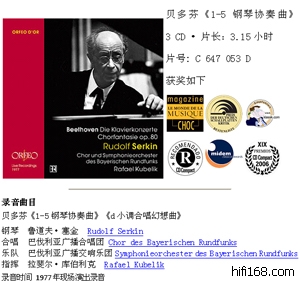 看到一套鲁道夫*塞金与库伯里克合作的贝多芬1-5钢琴协奏曲和合唱幻想曲,很难得看到这两位音乐家合作的录音。塞金演奏的贝多芬一直是我喜欢的版本之一。有谁听过这套录音?好吗?Telarc早先出过一套塞金晚年(198?年录音)与小泽征尔合作的版本,差强人意,塞金不停地弹错音,可能是当时演奏状态不好,记得好像也是现场录音?