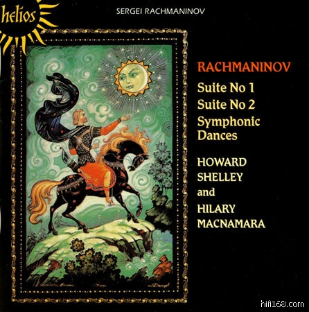 俄國作曲家拉赫曼尼諾夫 (1873-1943) 同時是位傑出的鋼琴演奏家,他的雙鋼琴曲《俄羅斯狂想曲,第一、二號組曲》也是名作。第一號組曲又稱《音畫幻想曲》,由《船歌》《夜與愛》《淚》與《復活節》四首組成。第二號組曲則由《序奏》《圓舞曲》《浪漫曲》與《塔朗泰拉舞曲》組成。《交響組曲》是拉氏的最後作品,與管弦曲版本同樣出色,作者原本有意將三樂章以「晨、午、夜」象徵人生的「孩提、成熟、老衰」,尤其在終樂章傳統安魂曲的「審判之日」主題之後出現「哈利路亞」和絃,暗示天堂在望。謝里夫婦詮釋出作者「交響」重於「舞曲」的意義,並且陳述明確,暗富哲思,親切感人。錄音上乘,琴音透徹,動態極佳,榮獲德國唱片評鑑大獎。