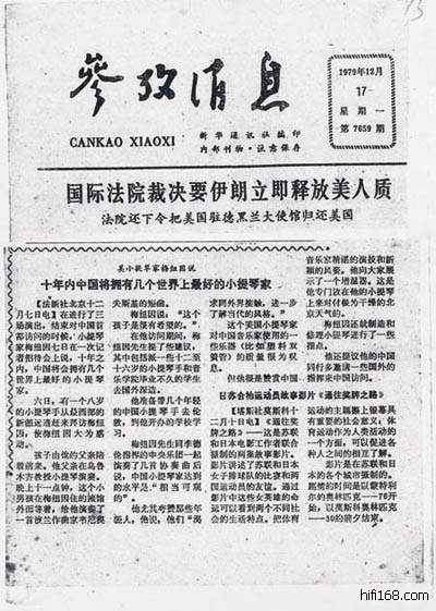 文革结束后,第一位到中国演出的小提琴家梅纽因发现了金力(上音附小学生能够)和陈响(父亲也是中央毕业的小提琴专业毕业的,当时新疆歌舞团团长)。听了他俩的演奏预言10年后世界上最好的小提琴家有中国人(附当年报纸为证)。