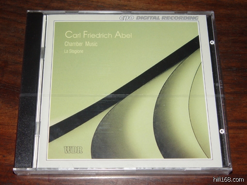 正在听这张,Carl Friedrich Abel (1723 - 1787), Chamber Music. Performed by members of La Stagione, Frankfurt. Recorded at St. Michael's Church, Michaelshoven, Germany in January 1993. Total time: 61'08". cpo 999 209-2. 很不错!