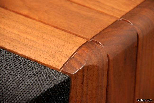 我试听的这款收藏版是采用纯原木箱体,它用的是25mm厚的美国胡桃木,所以整个扬声器非常重,每只重达31公斤。