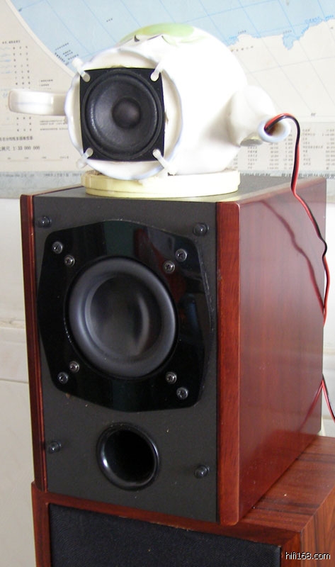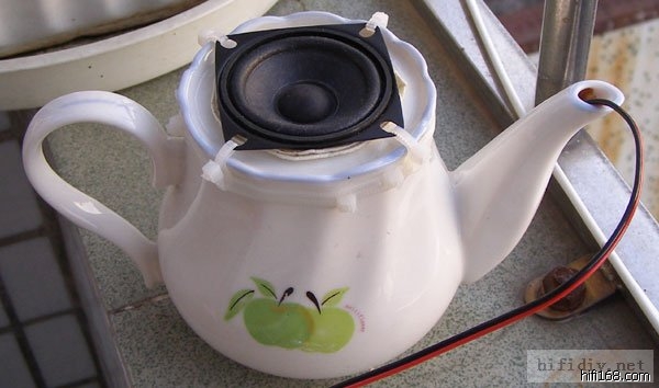 有一次拿了一对优雅两寸的小全频喇叭(NS2-143-16B ,频响220HZ-20KHZ),由于懒得做木箱,就随便拿了一对荼壶来作箱体。居然效果非常不错,这对小箱子有着优雅全频中最好听的中高频,就是低频太差了点,不过这也是这种口径的喇叭的通病。有经验的老烧都知道,圆形的音箱箱体内驻波最少,最容易出好声,所以很多老烧都有用泡菜坛子做音箱的经历。