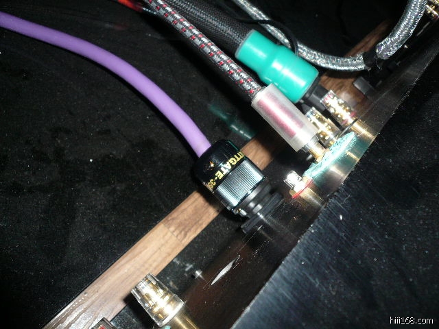 最后一张图是左声道的信号线在换电源线尾插时插错了,应插到左边的卡达斯镀铑座上。当时刚一开声怪怪的,听见右边声音大点,声像偏右点。一换回来正常。
