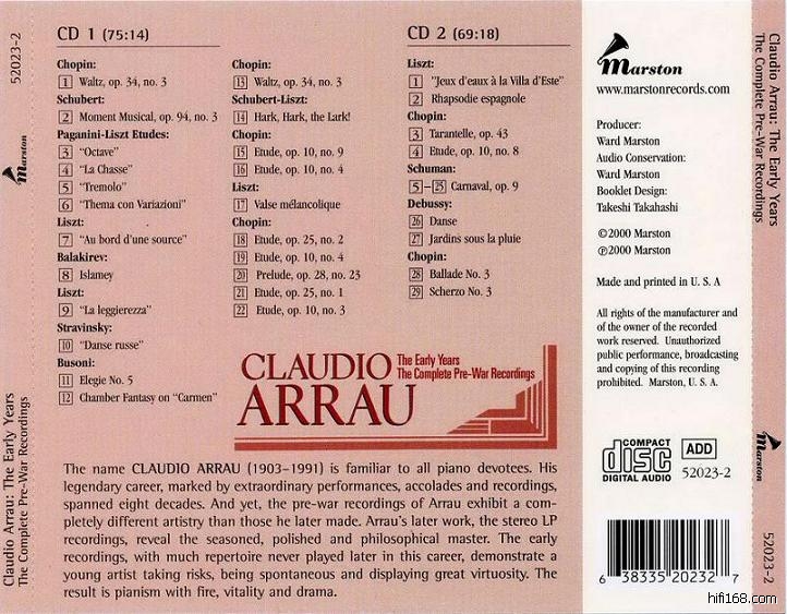 Claudio Arrau,是我们这个时代最伟大的钢琴巨人之一。他的职业生涯跨越了整个20世纪,早在1908年Arrau就在祖国智利举行了第一场音乐会,而他在智利的最后一场音乐会则是在他一生中第九个十年——1984年举行的。Arrau是录音空前丰富的钢琴家之一,从二战结束起,伴随着他国际声誉的稳固,即出现了一份以“Arrau”为关键词的最庞大的唱片目录。在此以前,Arrau的录音就相对少的多了,但是他早期的录音仍然是有记录的钢琴演奏史上不可或缺的重要遗产。