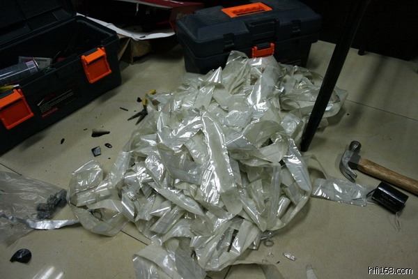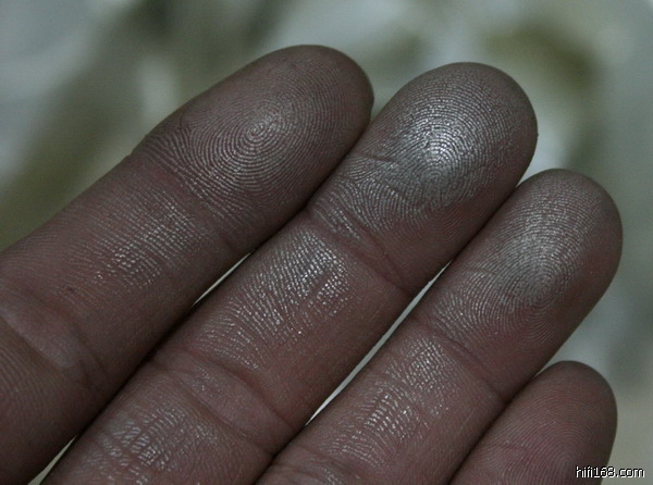 呵呵,搞到一手银粉,原来内部是渡了一层薄薄的银粉但是没发现有油滴出来,有点滑滑的。