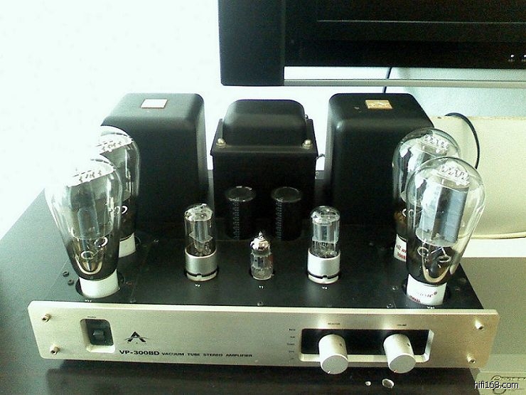 大极典VP—300BD胆机,胆机大师曾德钧的成名之作,可遇不可求的一代经典。300B的声音就不用多说了,我个人的体会是俩字:“妖艳”。 本机用4支300B做成单端并联18W,推力十足,音色纯正,音场开扬,难得的是低频厚实有力,下潜深,得益于大极典自己研制的牛技高一筹。原机4支桂光4300B刚换成全新全真金脚陶瓷座300B(还未褒开),前级管也由曙光12AX7换成全新全真金脚12AX7,香槟色拉丝面板,成色还行(图片用手机拍摄,唯一的外观瑕疵是俩音频输出牛罩上有几点掉漆,见图3),状态很好,无修无磨。原本打算自用收藏的,因还有一套胆+石的功放挂出来无人赏识(见帖http://www.jd-bbs.com/thread-2174936-1-1.html),那就试试这个经典的东西有没有人感兴趣。