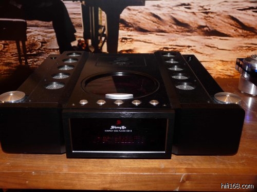 CD机采用 声雅CD-3,这台CD机满漂亮的,黑色有机械威严感,采用上面板手动滑动仓门设计。