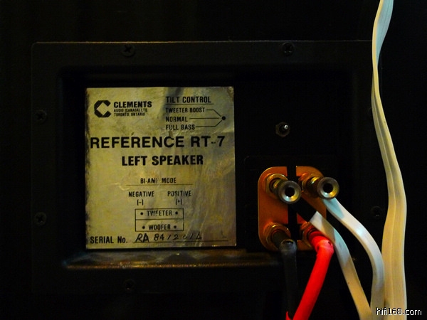 美国CLEMENTS克莱门斯REFERENCE RT-7旗舰,顶级7寸+4寸长Kapton Ribbon平面高音及超高音,可至150KHZ,8寸Kapton 低音,悬边由英国订制,是世界上最薄的悬边之一,配合Compression Line反射迷宫箱体,低频可下潜26HZ。分频点1575Hz,Wonder-Cap与Solen电容,以及陶瓷电阻分音器。喇叭高146CM,宽27CM,深50CM,重量为50kg。效率88dB,阻抗6.5奥姆。喇叭端子是Tiffany制品,可作Bi-Wiring用,它还有三段每段2.5dB的高频增益设置调节,可以对不同的环境做高频的补赏。 高频有屏风喇叭的清晰与宽松自然,贵在与中低频的衔接良好,结构类似马田芦根的思路,声音颇有MBL的味道。