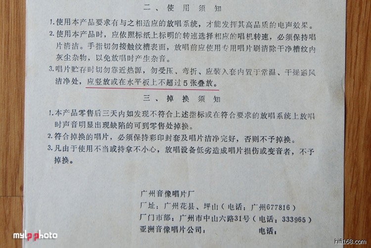 在遥远的年代,唱片的材料和数量都是不能跟现代的相比(尤其在没有经历过真正的黑胶时代的中国),随着时代的变迁,人们的观点也会不断发生变化的。我手上这张80年代太平洋公司出品的唱片,里面也有一张官方使用说明,请留意红线部分的内容: