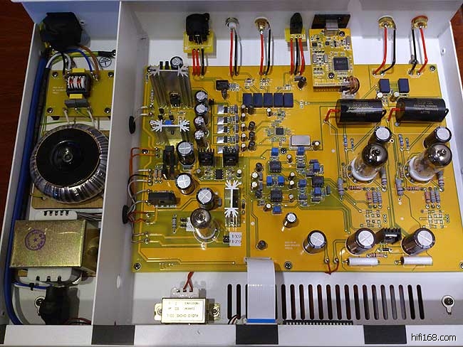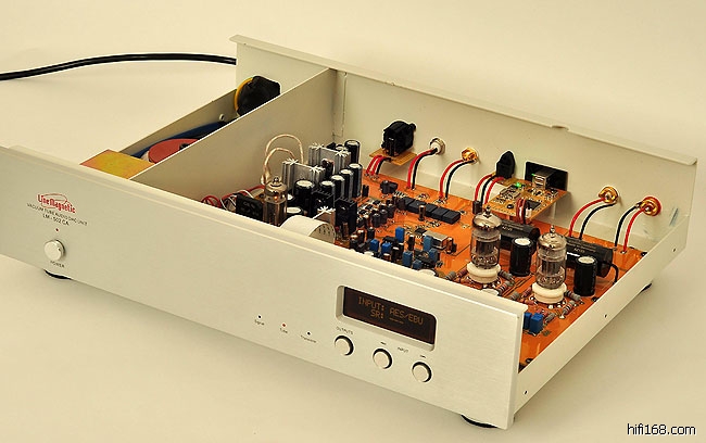 晶体管输出电路采用高级运放,电子管输出电路采用二只12AU7电子管放大。