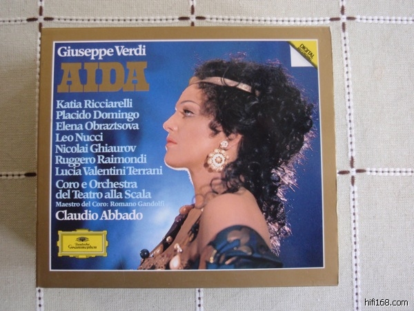 但是90年代后重新数码化的版本(如图)是有问题的。这一版《阿依达》比初版的音量会大而亮,但是在最高潮的凯旋合唱,高频区明显饱和失真。事实上,同期重新数字化的同一“RCA Opera Treasure”系列的歌剧都把音量调大了,但是因此失真饱和的,似乎就是这版《阿依达》。
