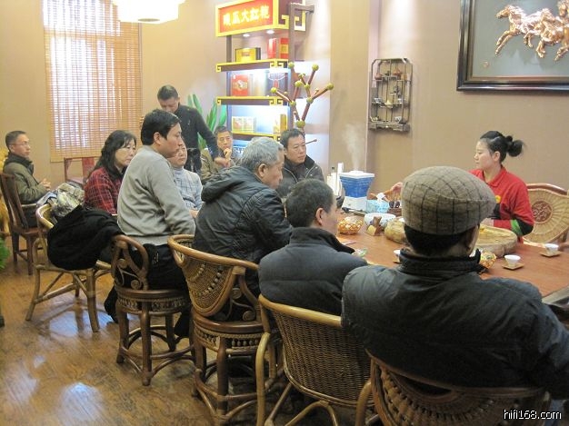 大家听完现场古琴后和古琴老师刘君在一起喝茶,交流心得!