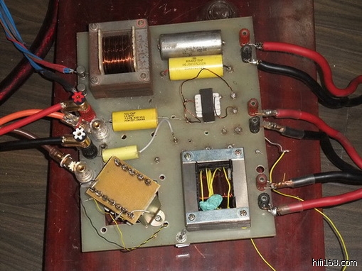 首先从分频器的调整说起,其实调整喇叭的分频器我们不能单从一只单元着眼去调整,应从整体去考虑调试的方法,成功的机会会大很多。对分频器的调整既是个技术性很强,又是个比较复杂活儿。老先生的ALIEC515B分频器是100%DIY制品,他是专门针对此箱而研发的,据他所说此分频器为“平衡三线分音牛耦合分频器”。