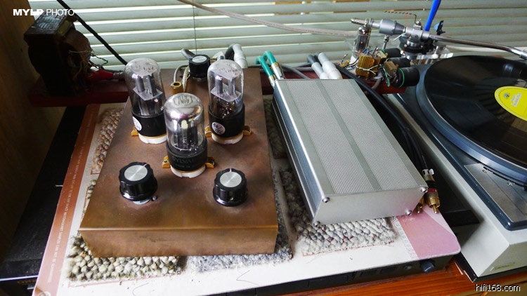 原帖由 mylp 于 2011-2-20 14:41:00 发表唱放是老雷的胆MM,旁边的小胆机是无难兄的DIY作品: