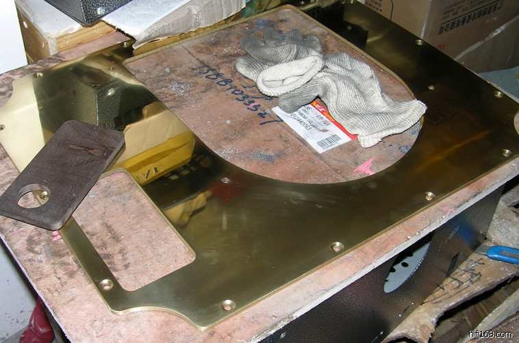 所以,在下设计401的底座是也采取了同样的原则:大重量、低重心、钢板弹簧悬挂,而将被发烧友诟病最多的401的“体积、噪声巨大的”电动机从其面板上分离、通过3个立柱固定在作为基座的底板上。其间得到了luss兄宝贵的THORENS的REFRENCE的拆解资料图片和Richard老弟宝贵的建议。