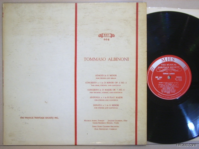 [size=4]M1750 安德烈 小号等演奏《阿尔比诺尼 柔板、双簧管、弦乐协奏曲 等》,美国MHS单声道头版,唱片NM-/封套VG,90元