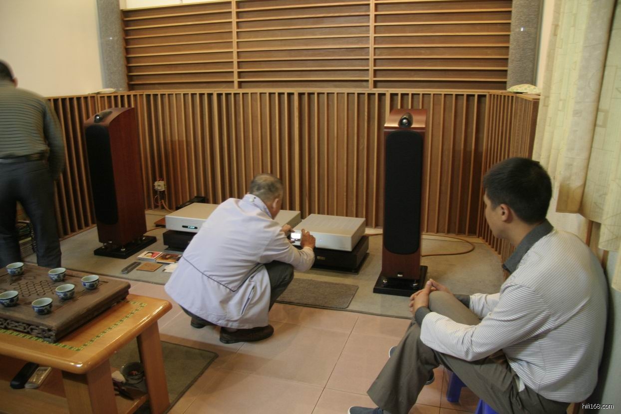 第四站,我们到访上次已家访过的尹生家,听说尹生经我们上次到访后调整过,现在的声音有飞跃的进步,所以今次一定要再一次感受下。尹生的器材由:全套瑞典 BLADELIUS(谱丽声)CD机,前后级功放推B&W 704落地音箱,尹生喜欢听软件比较多,有人声,小协,交响乐和鼓乐等,一踏进尹生的听音室就觉得比上次靓很多,高频柔细,低频到中频宽松,饱满,力度增强不少 ,背景宁静,十分耐听。问起尹生改进那一部分令现在的系统有这么好的表现,尹生说是更改了3条优质的保险丝,调教了电源,所以说一套系统想要好表现,首先处理好电源,没有干净的电源那怕顶级器材也是大打折扣。不过尹生现在系统低频有点过肥,不干净,看来下一步还是要在听音室里加强下扩散和吸音, 效果会更出色。