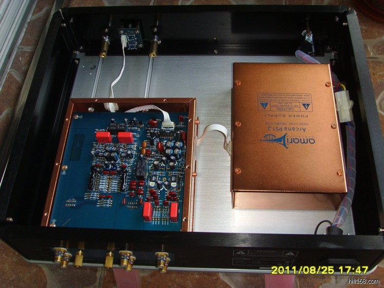 1、2009年11月购于原厂,实际使用100小时左右。外观很新,没有任何划痕,全铝机箱(不仅顶盖和底板,四面都是铝板制作,要打开顶板需要从底板上卸下螺丝,类似于美国“怀念”的做法),内部电源与主放大部分分离并施以铜盒屏蔽,主放大部分还用了橡胶垫材隔离底板震动;