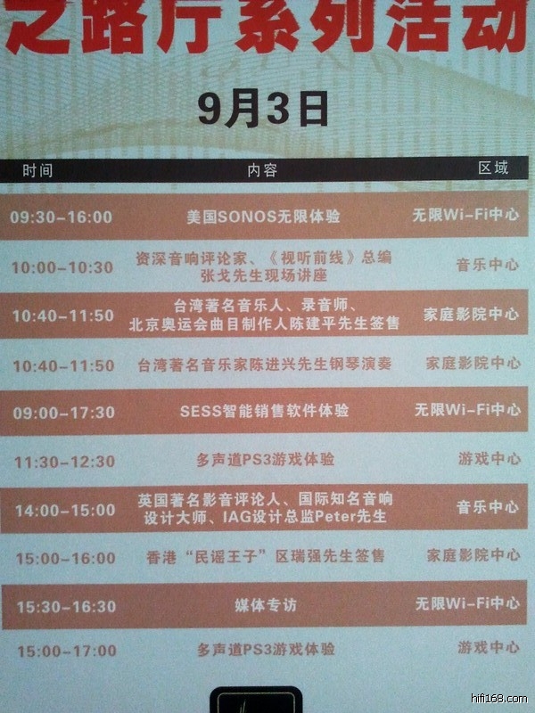 首先为大家送上的是各大房间的演示时间表!