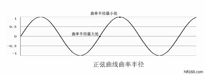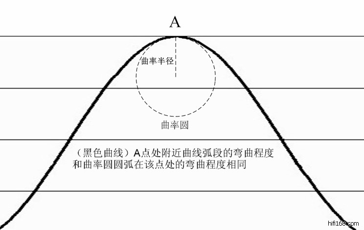 原帖由 开心果 于 2011-10-5 10:17:00 发表有前面比例关系的印象后,下面再来看看,粗的针头如何进入坑纹的。先了解一下曲率,通俗的讲就是曲线弯曲的程度,通常用曲率圆表示。曲线上某点附近的弯曲的程度和该处的一段圆弧弯曲的程度相同,该圆弧所在的圆叫曲率圆,它的半径叫曲率半径。简单的图示如下。正弦信号坑纹表面曲线的曲率半径特点如下图: